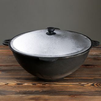 Казан чугунный 12л Д42см с крышкой, плоское дно